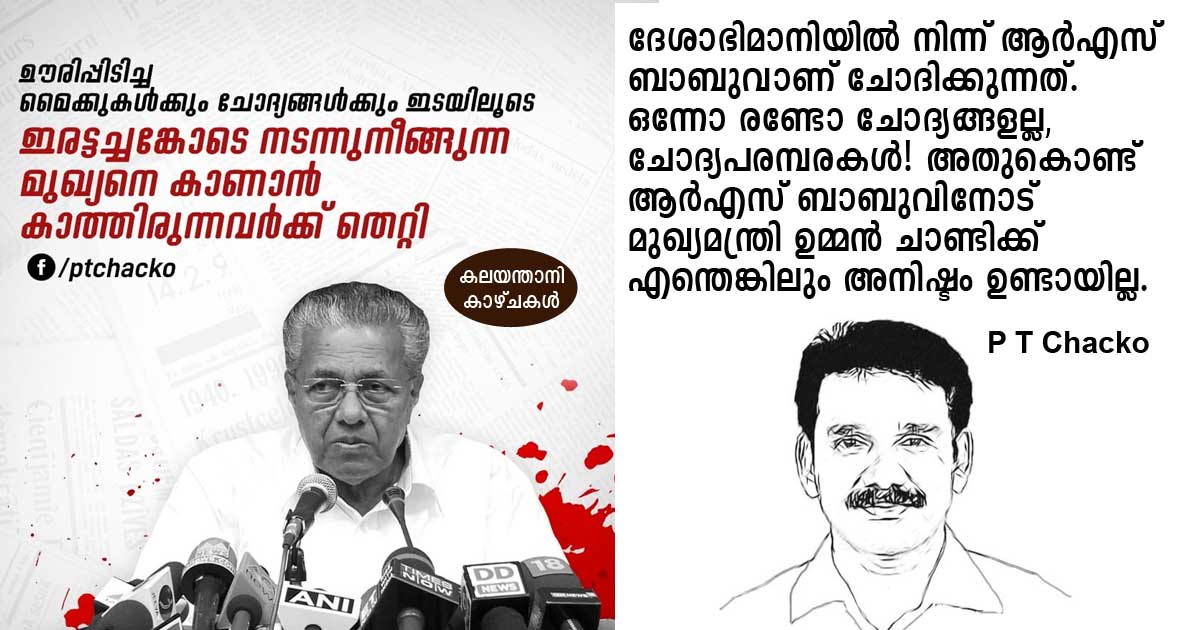 ”ഊരിപ്പിടിച്ച മൈക്കുകള്ക്കും ചോദ്യങ്ങള്ക്കും ഇടയിലൂടെ ഇരട്ടച്ചങ്കോടെ നടന്നുനീങ്ങുന്ന മുഖ്യനെ കാണാന് കാത്തിരുന്നവര് ആ പൊട്ടിത്തെറി കണ്ട് ഞെട്ടി!”