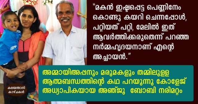 അമ്മായിഅപ്പനും മരുമകളും തമ്മിലുള്ള ആത്മബന്ധത്തിന്റെ കഥയുമായി കോളേജ് അധ്യാപികയായ അഞ്ജു ബോബി നരിമറ്റം.