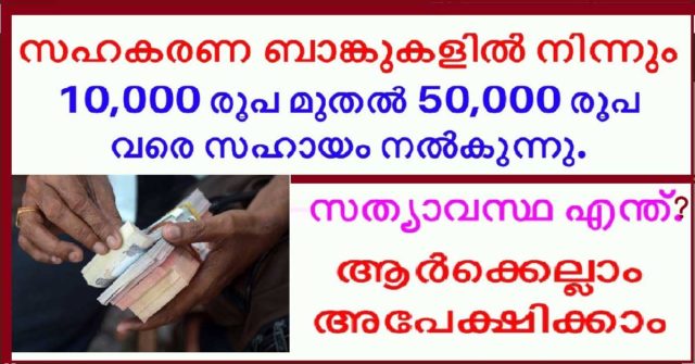 10,000 മുതൽ 50,000 രൂപ വരെ സംസ്ഥാനത്തെ എല്ലാ സഹകരണ ബാങ്കുകളിൽ നിന്നും സഹകാരികൾക്ക് ധനസഹായം നൽകുന്നു. ഇത് തിരിച്ചടക്കേണ്ടതില്ല. സോഷ്യൽ മീഡിയയിൽ വ്യാപകമായി പ്രചരിച്ച ഒരു വാർത്തയാണിത് . എന്താണ് ഇതിന്റെ സത്യാവസ്ഥ ?
