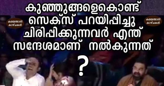 നിഷ്കളങ്കരായ കൊച്ചുകുട്ടികളെ സ്റ്റുഡിയോയിൽ കൊണ്ടുവന്നിരുത്തി ഓരോന്ന് പറയിപ്പിക്കുന്നത് കേട്ടാൽ നമ്മുടെ തൊലി ഉരിഞ്ഞുപോകും . എന്തിനാണ് ഇങ്ങനെ വേഷം കെട്ടിക്കാൻ മാതാപിതാക്കൾ തങ്ങളുടെ കുഞ്ഞുങ്ങളെ സ്റ്റുഡിയോയിൽ കൊണ്ടുവന്നിരുത്തുന്നത്? വീട്ടിനുള്ളിൽ ഒതുങ്ങി നിൽക്കേണ്ടതായ കാര്യങ്ങളും അച്ഛനമ്മമാരുടെ സ്വകാര്യ സംഭാഷണങ്ങളും ലോകം മുഴുവൻ കേൾക്കെ കുഞ്ഞുങ്ങൾ വിളിച്ചുപറയുമ്പോൾ നഷ്ടമാകുന്നത് നാട്ടിലുള്ള തങ്ങളുടെ വിലയും നിലയുമാണെന്നു ഈ മാതാപിതാക്കൾക്ക് എന്തേ മനസിലാവുന്നില്ല ? ലജ്ജ എന്ന വികാരം ഇല്ലാത്തവരാണോ ഇത്തരം ചവറു പരിപാടികൾക്കായി കുഞ്ഞുങ്ങളെയും ചുമന്നുകൊണ്ട് സ്റ്റുഡിയോയിലേക്ക് വണ്ടികയറുന്നത് ?