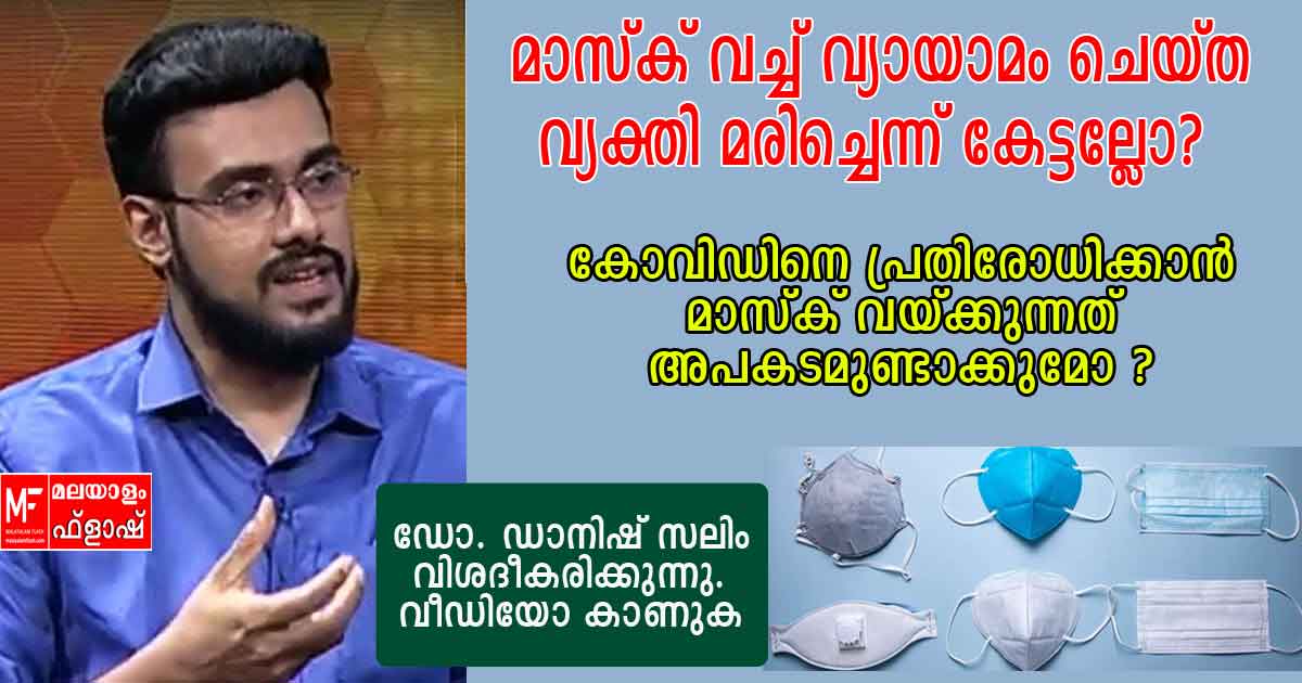 കോവിഡിനെ പ്രതിരോധിക്കാൻ മാസ്കു വയ്ക്കുന്നത് അപകടമുണ്ടാക്കുമോ ? തുടർച്ചയായി കൂടുതൽ നേരം മാസ്ക്ക് ഉപയോഗിച്ചാൽ പാർശ്വഫലം ഉണ്ടാകുമോ ? മാസ്ക് വച്ച് വ്യായാമം ചെയ്ത വ്യക്തി മരിച്ചെന്ന് കേട്ടല്ലോ ? ഒരു മാസ്ക് എത്ര മണിക്കൂർ ഉപയോഗിക്കാം ? ഉറങ്ങുമ്പോൾ മാസ്ക് വയ്ക്കണോ? മാസ്ക്ക് എപ്പോഴൊക്കെ നിർബന്ധമാണ്? എപ്പോൾ ഒഴിവാക്കാം ? ആരെല്ലാം മാസ്ക് വയ്ക്കണം ? ഇങ്ങനെ സംശയങ്ങൾ നിരവധിയാണ് ആളുകൾക്ക് . ഇതിനെല്ലാം മറുപടി നൽകുന്നു ഡോ. ഡാനിഷ് സലിം.