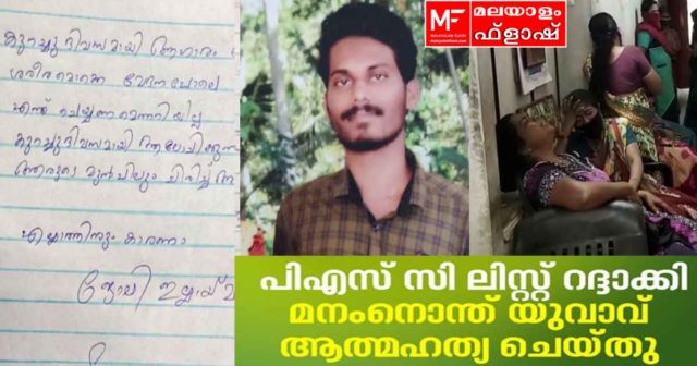 തിരുവനന്തപുരം: പി എസ് സി റാങ്ക് ലിസ്റ്റ് റദ്ദായതില് മനം നൊന്ത് 27 കാരനായ യുവാവ് ആത്മഹത്യ ചെയ്തു. റദ്ദാക്കപ്പെട്ട സിവില് എക്സൈസ് ഓഫീസര് റാങ്ക് ലിസ്റ്റില് 77ാം റാങ്കുകാരനായിരുന്നു അനു. തിരുവനന്തപുരം കാരക്കോണം തട്ടിട്ടമ്പലം സ്വദേശിയാണ്. കിടപ്പുമുറിയിൽ തൂങ്ങിമരിച്ച നിലയിലാണ് അനുവിനെ കണ്ടത് .