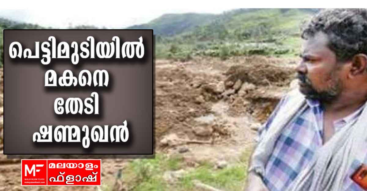 പെട്ടിമുടിയിലെ ദുരന്തഭൂമിയിൽ എന്നും മകന്റെ മൃതദേഹം തപ്പി നടക്കുന്ന ഒരച്ഛന്റെ ദൃശ്യം ആരുടെയും കണ്ണ് നനയിക്കും. രക്ഷാസംഘം തെരച്ചില് അവസാനിപ്പിച്ച് പോയെങ്കിലും ഷണ്മുഖൻ ഇനിയും തിരച്ചിൽ നിറുത്തിയിട്ടില്ല . എന്നും രാവിലെ മുതൽ ഇരുട്ടുവോളം മകന്റെ ശവശരീരം തപ്പിദുരന്തഭൂമിയിൽ ഇറങ്ങും ഈ അച്ഛന്.