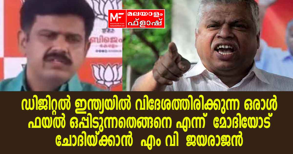 തിരുവനന്തപുരം : വിദേശത്തായിരുന്ന പിണറായി സെക്രട്ടറിയറ്റിൽ ഇരുന്ന ഫയലിൽ ഒപ്പിട്ടതെങ്ങനെയെന്ന് മോദിയോട് ചോദിക്കാന് എം.വി ജയരാജൻ. ഡിജിറ്റൽ ഇന്ത്യയിൽ വിദേശത്തിരിക്കുന്ന ഒരാൾ ഫയല് ഒപ്പിടുന്നതെങ്ങനെ എന്ന് സന്ദീപ് അന്വേഷിക്കണം. പൊട്ടത്തരത്തിന് മറുപടിയില്ലെന്നും ജയരാജൻ പറഞ്ഞു