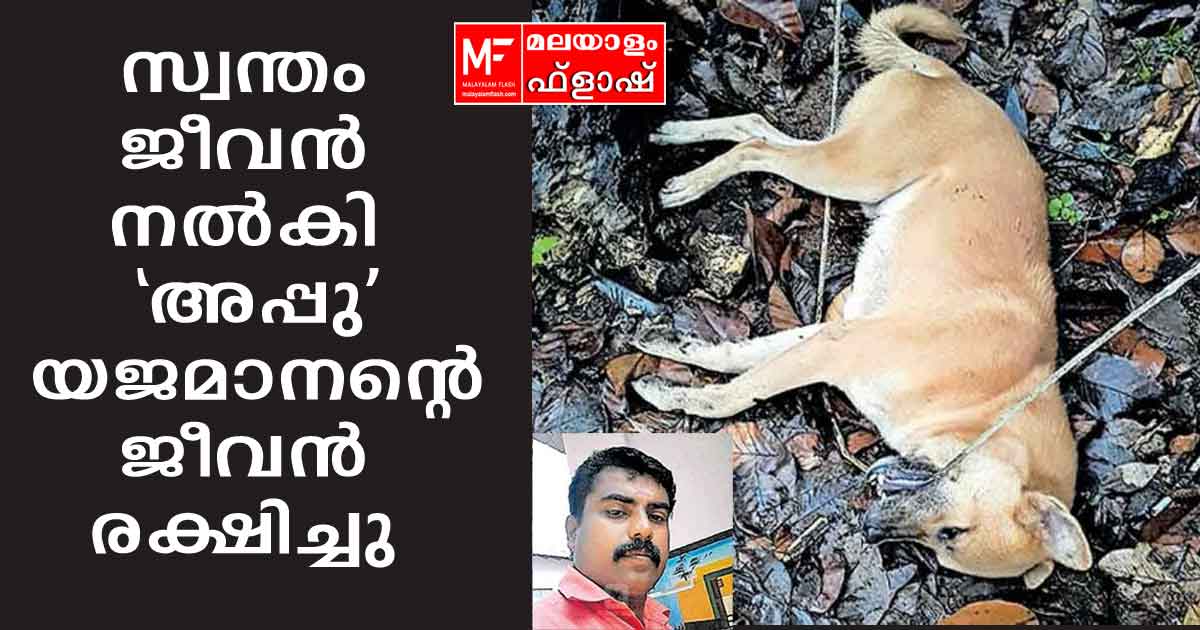 ചാമംപതാൽ വാഴപ്പള്ളി വിജയന്റെ മകൻ അജേഷിനെയാണ് അപ്പു എന്ന വളർത്തു നായ സ്വജീവൻ നൽകി രക്ഷിച്ചത്. അയലത്തെ വീട്ടിൽ നിന്ന് പാൽ വാങ്ങാൻ കുപ്പിയുമായി ഇറങ്ങിയ അജേഷിന്റെകൂടെ അപ്പുവും പതിവുപോലെ ഇറങ്ങി മുമ്പിൽ നടന്നു.
