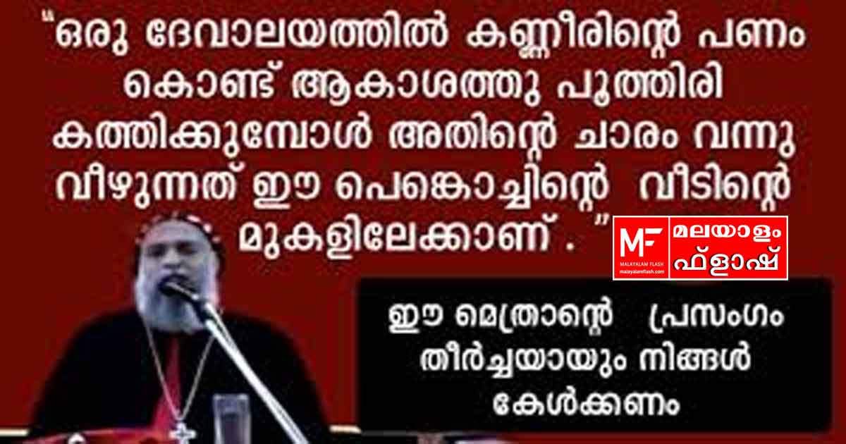 ഈ മെത്രാന്റെ പ്രസംഗം തീർച്ചയായും ഒന്ന് കേൾക്കണം. നമ്മുടെ കണ്ണ് നനയിക്കുന്ന ആ സംഭവം തിരുമേനി വിവരിക്കുന്നത് ഇങ്ങനെ.