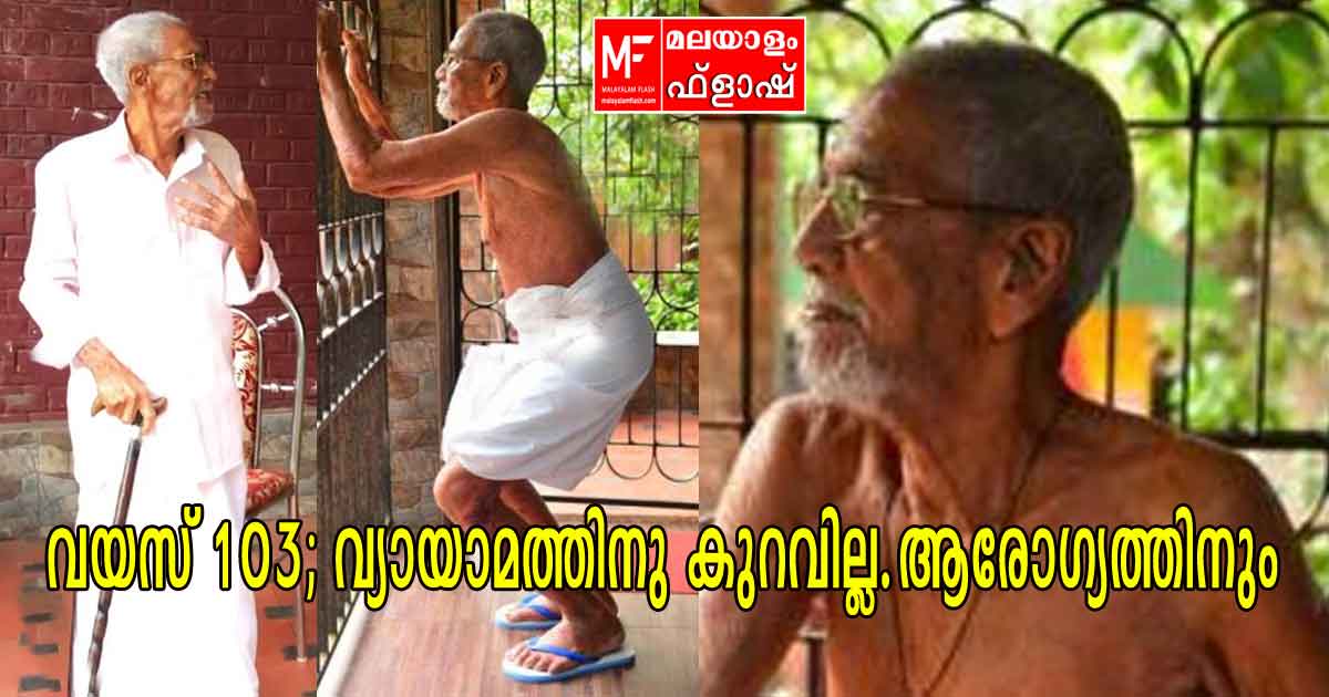 ” ഒന്നാമത് ദൈവകൃപ . രണ്ടാമത് ജീവിച്ചു പോന്ന രീതി . എന്നുവച്ചാൽ പതിവായ വ്യായാമവും ഭക്ഷണത്തിൽ ക്രമീകരണവും. ദൈവാനുഗ്രഹത്താൽ പരസഹായമില്ലാതെ ദിനചര്യകൾ എല്ലാം ചെയ്യാൻ ഈ നൂറ്റി മൂന്നാം വയസിലും കഴിയുന്നുണ്ട്. ”