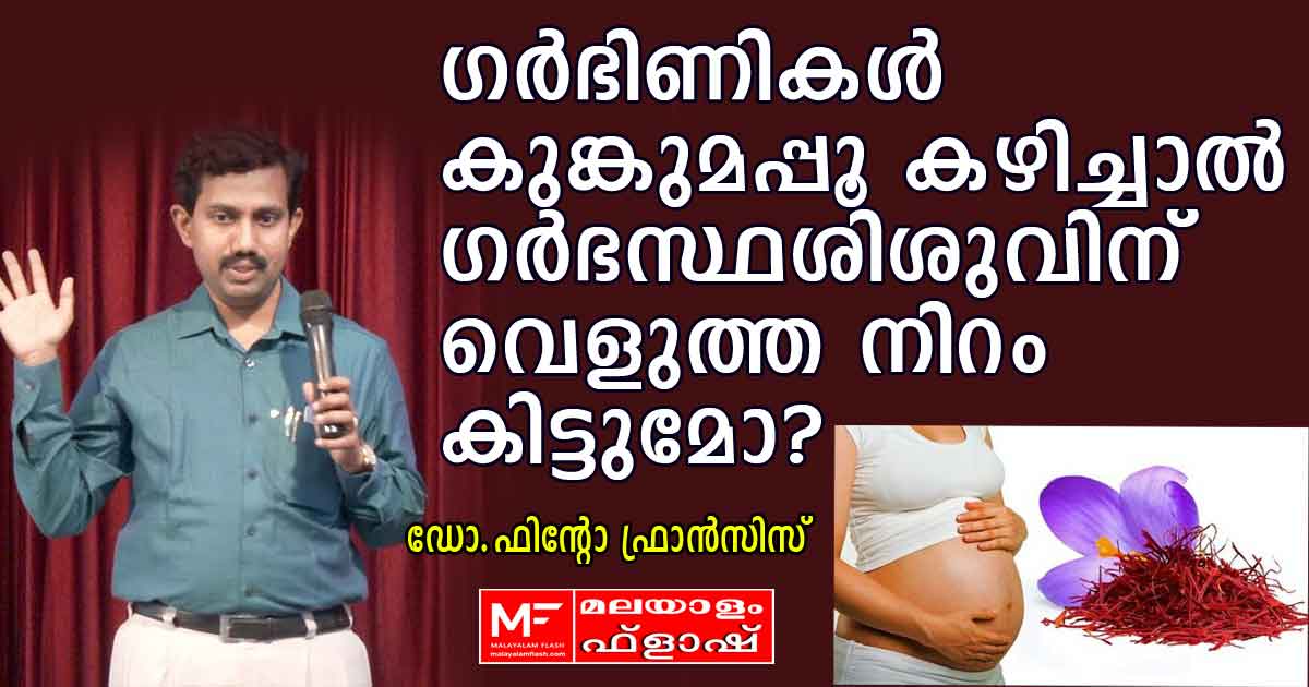 ഗർഭിണികൾക്കുള്ള മറ്റൊരു സംശയം അമ്മമാർ കുങ്കുമപ്പൂ കഴിച്ചാൽ കുഞ്ഞിന് വെളുത്ത നിറം കിട്ടുമോ എന്നാണ്. ഇത് വെറും അബദ്ധധാരണയാണ്. കുഞ്ഞുങ്ങൾക്ക് നിറം ഉണ്ടാകുന്നത് മാതാപിതാക്കളുടെ നിറത്തിന് അനുസരിച്ച് ആയിരിക്കും. അതൊരു പാരമ്പര്യഗുണമാണ്. കുങ്കുമപ്പൂ കഴിച്ചാൽ കുഞ്ഞിന് വെളുത്ത നിറം കിട്ടുമെന്ന് ഇതുവരെ ലോകത്ത് ഒരിടത്തും ശാസ്ത്രീയമായി തെളിയിക്കപ്പെട്ടിട്ടില്ല.