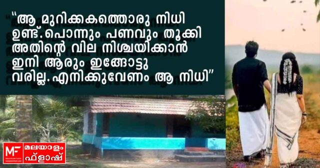 ഞാൻ അദ്ദേഹത്തെ അടുത്തു വിളിച്ചു. എന്നിട്ട് പതിയെ പറഞ്ഞു: “ആ മുറിക്കകത്തൊരു നിധി ഉണ്ട്. വിലമതിക്കാനാവാത്ത നിധി. പൊന്നും പണവും തൂക്കി ഇനി ആരും അതിന്റെ വില നിശ്ചയിക്കാൻ ഇങ്ങോട്ടു വരില്ല . എനിക്കുവേണം ആ നിധി .”