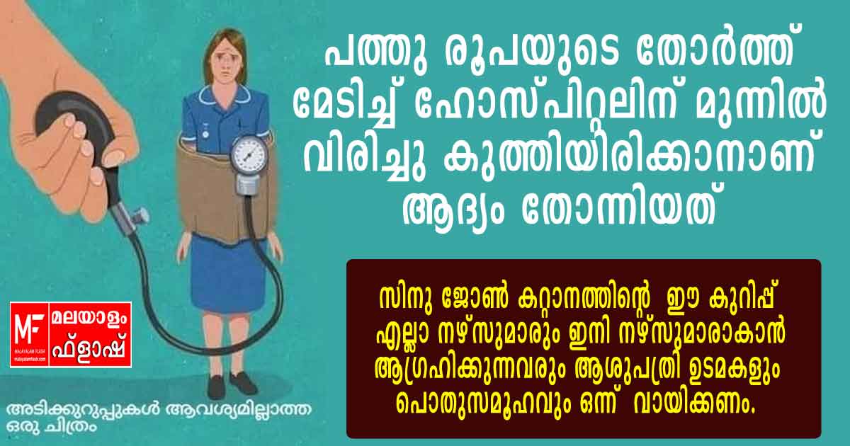 സിനു ജോൺ കറ്റാനത്തിന്റെ ഈ കുറിപ്പ് എല്ലാ നഴ്സുമാരും, ഇനി നഴ്സുമാരാകാൻ ആഗ്രഹിക്കുന്നവരും ആശുപത്രി ഉടമകളും അധികാരികളും അതിലുപരി പൊതുസമൂഹവും ഒന്ന് വായിക്കണം.