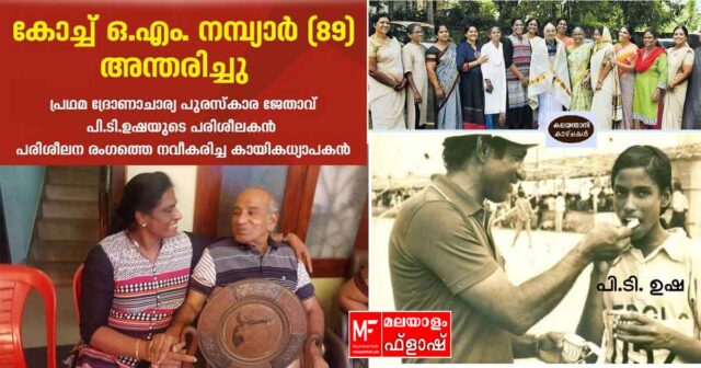 കോഴിക്കോട്: പി ടി ഉഷയുടെ കായിക പരിശീലകനായിരുന്ന ഒ.എം.നമ്പ്യാർ ( 89 ) അന്തരിച്ചു. പക്ഷാഘാതത്തെ തുടർന്ന് ഏറെ നാളായി ചികിത്സയിലായിരുന്നു. പത്മശ്രീയും ദ്രോണാചാര്യ പുരസ്കാരവും നൽകി രാജ്യം ആദരിച്ചിട്ടുണ്ട്. 1984 ലെ ലോസ്ഏഞ്ചൽസ് ഒളിമ്പിക്സിൽ പി.ടി.ഉഷയുടെ കോച്ചായിരുന്നു.