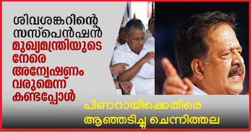 ശിവശങ്കരന്റെ സസ്പെൻഷന്റെ കാരണം മുഖ്യമന്ത്രി വ്യക്തമാക്കിയില്ലെങ്കിലും ജനങ്ങൾക്ക് ബോധ്യപ്പെട്ടുവെന്ന് പ്രതിപക്ഷ നേതാവ് രമേശ് ചെന്നിത്തല . പ്രിൻസിപ്പൽ സെക്രട്ടറിക്ക് പങ്കുണ്ടെങ്കില് ഉത്തരവാദിത്തം മുഖ്യമന്ത്രിക്കാണ്. തുടക്കം മുതല് മുഖ്യമന്ത്രി ശിവശങ്കറിനെ ന്യായീകരിച്ചു. അയാളുടെ പേരിൽ കുറ്റമെന്തെന്നു വരെ ചോദിച്ചു. താൻ ഉന്നയിച്ച ആരോപണങ്ങളെയൊക്കെ മുഖ്യമന്ത്രി കളിയാക്കി. പക്ഷേ ആരോപണങ്ങളെല്ലാം ശരിയെന്ന് പിന്നീട് തെളിഞ്ഞുവെന്നും ചെന്നിത്തല വാർത്താസമ്മേളനത്തിൽ പറഞ്ഞു . മുഖ്യമന്ത്രിയുടെ രാജി ആവശ്യത്തിലുറച്ചു നില്ക്കുന്നു. ചെന്നിത്തല വ്യക്തമാക്കി .